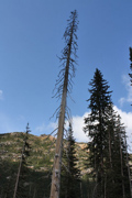 A far too common sight in the Cascade Mountains, lots of dead and dying trees in the forest.