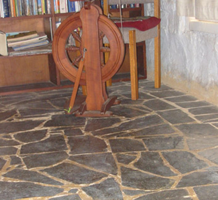 The first stage of our loungeroom floor was 50 mm concrete on well-compacted sandy loam soil. It survived 8 years without a crack, with a (small) earthquake going through, and the kids being yelled at for splitting kindling on it. Then I got a trailerload of offcuts from slate tile manufacture. Instead of boring, sterile-looking squares, these were all shapes, sizes and thicknesses. Some were so thick I split them to make two from one. Mortar was local sand with cement and lime, proportion being 5:1:1. Each slate had Bondcrete painted on the bottom before being laid. The skill is in keeping the floor level. Practice helps, so start where it doesn't matter.