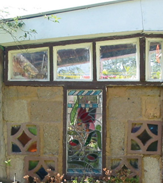 Read page 163 of the Earth Garden Building Book to learn how to embed bottles in a mudbrick wall.
