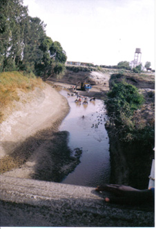 The photo that speaks to me most is the one that shows where the villagers got their water before the well was dug. Women and children from the village would walk for three hours every day to get water from a river that contained dirty, brown, stagnant, polluted water, water in which animals and people bathed, urinated and defecated. You can see a number of animals in the water in the photo. So as you can imagine, the water is full of diseases. By contrast, the water from the well passes the World Health Organisation standards for drinking water fit for humans.