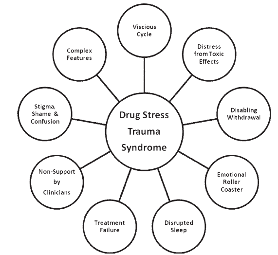 Stress: the effects of taking & stopping the drug are not only stressful, but distressing & often disruptive to pts quality of life Trauma-repeated distress & disruption to quality of life by the drug effects can be & often are traumatic Syndrome: it has a recognizable pattern of symptoms & signs |